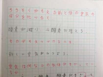 いつも宿題に出している課題とは別に、次の日の理科テストに備えてテスト勉強をして、見せてくれました。