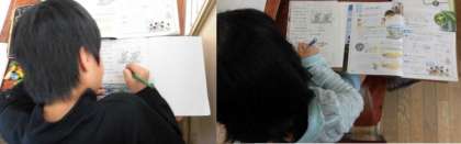 今日は、メダカを飼うための条件や、気をつけことなどについて学習しました。教科書の中から大切な言葉を見つけて、プリントに書きこんでいきました。