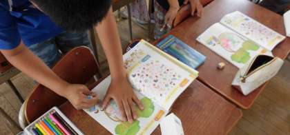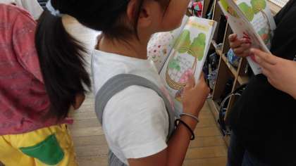 今日は、数をたずねる時に使う「How many〜?」を使って、リンゴの数をたずねあう活動をしました。自分でリンゴを赤色と緑色に好きな数だけぬり、同じ数の子とめぐり合ったらビンゴ!ビンゴのペア同士で名前を書きあいました。みんな積極的に活動に参加していました。
