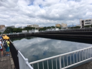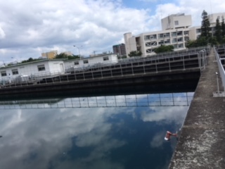 最初の沈殿池には魚がいたり泥がたくさんありました。しかし次の沈殿池に進んで行くと、泥たちが小さな粒となって回ったり流れたりしていました。