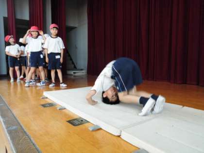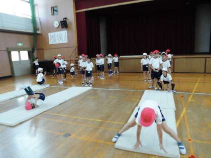 講堂でマット運動を行いました。