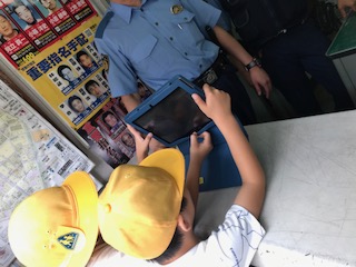 竹島交番チームは、パトカーに乗らせてもらい目がキラキラ☆