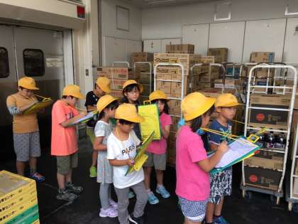 マルハチチームは、スーパーのバッグヤードを見せてもらいました。初めて入る扉の向こうには、見たことのある商品や食材がたくさん!