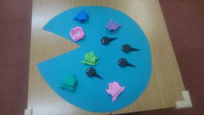 図書室にもこの季節にピッタリの掲示物が登場しました。図書館ボランティアさんが作ってくださったオタマジャクシとカエルです。素敵な掲示物がどこにあるのか、ぜひ探してみてほしいですね。