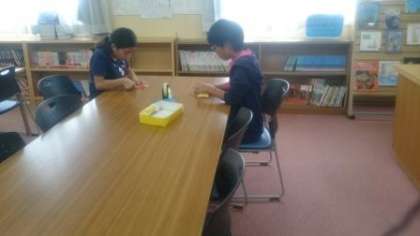 今日は、6年生も飾り作りを手伝ってくれました。みんなが楽しく行ける図書室になったらいいですね。
