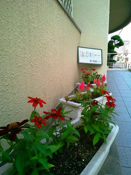 「花とみどりのサポーター」のみなさんに、玄関前と東門横のお花を植え替えていただきました。