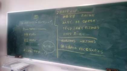 今日は、学年全員で自分のしおりを作り、持ち物や活動内容について改めて確認をしました。「まだ用意できてないなー」「はやくやりたい!」など、わくわくした様子が伝わってきました。