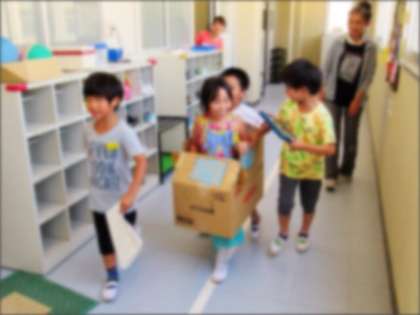 警察署の帽子やパトカー、スーパーのエプロンなど工夫して作りました。