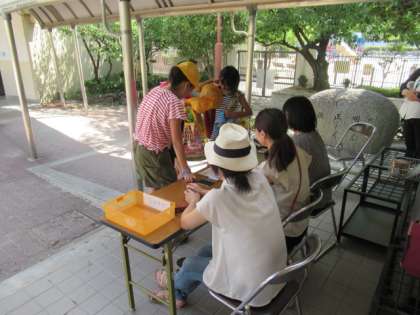 さて、プール開放の受付や図書館開放の当番では保護者の方々にお世話になっています。保護者や地域の方の協力があって子どもたちは元気に活動ができます。