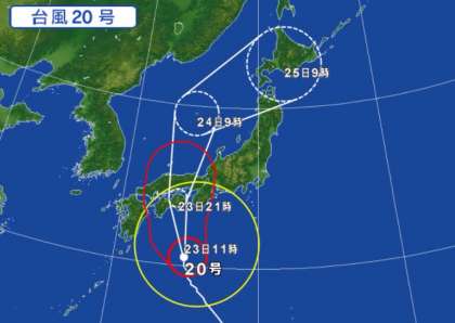 本日の夕刻から明日未明にかけて、近畿地方に大雨と暴風の影響がでる予報です。
