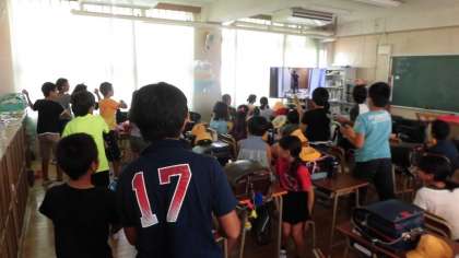 教室でもお手本の映像を見ながら、パーランクがわりに団扇を叩いて練習をしました。
