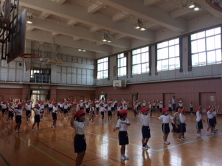 下の写真は講堂でのダンス練習です。2年生と一緒に取り組んでいます。