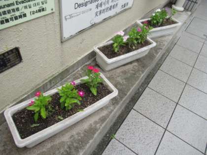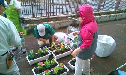 先日の台風で学校の樹木や花壇、プランターも大きな被害を受けました。