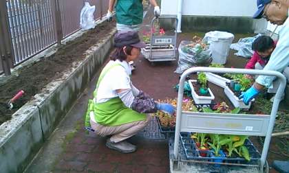 今日は、「花と緑のサポーター(香簑・竹島地域緑化リーダー)」のみなさんによって、美しく整備され、運動会に向けて新しいお花を植え替えてくださいました。