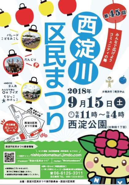 明日、9月15日(土)は、「西淀川区民まつり」が西淀公園で開催されます。