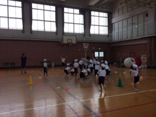1年生は講堂で運動会の練習をしました。