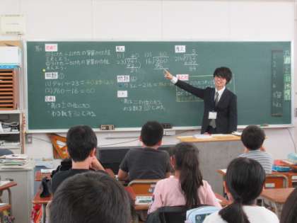 今日の5時間目は、4年生の安東先生が算数の授業をおこないました。割り算の学習でした。