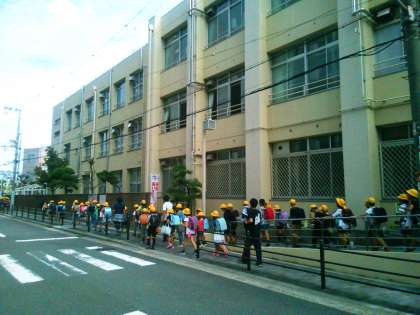 今日の5時間目は、台風接近に伴う避難訓練と地区ごとに集団で下校する訓練を実施しました。