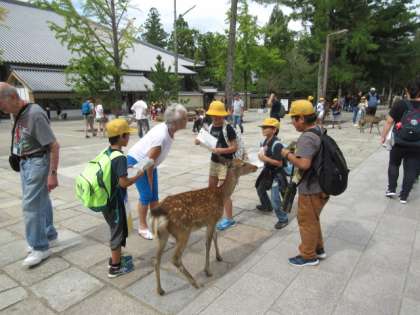 習った英語を使って、奈良公園を観光している外国人にインタビューです。