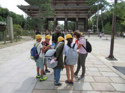 5年生は昼食後に奈良公園で「英語でインタビュー」をおこないました。
