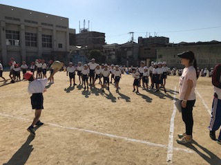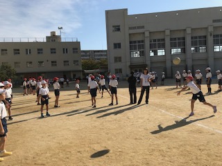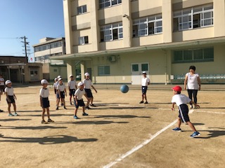 高学年の人は、低学年の子にやさしくボールを渡したり
