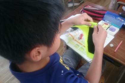 ペンケースやティッシュケースなどの実用的なものをつくっている子もいれば、マスコットや飾りなど生活を豊かにするようなものをつくっている子もいて様々です。