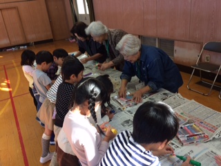 地域の名人の皆さん(昔遊びの先生)にお越しいただき、昔の遊びを教えて頂きました。