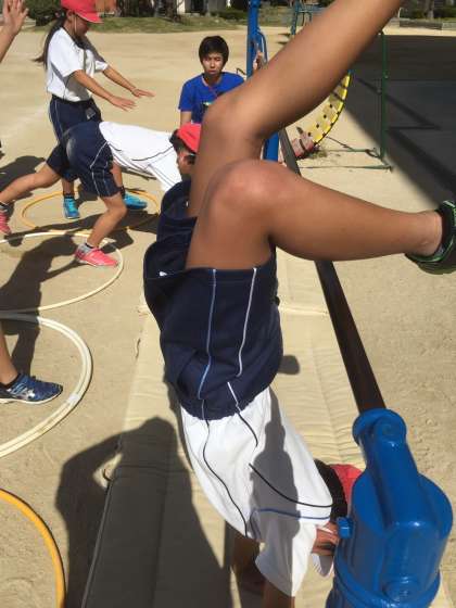 体育では、現在逆立ちを行なっています。