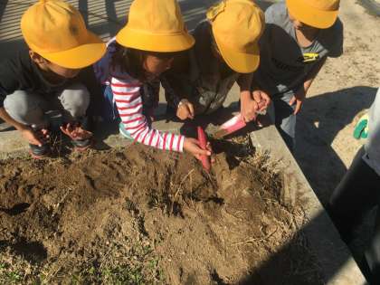 春に老人クラブの方に教えていただいて苗を植えた、あのお芋です。