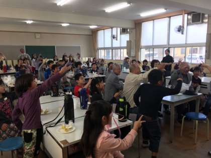 とっても盛り上がった「やきいものうた」老人会の方も一緒にじゃんけんに参加してくださいました!