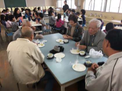 いよいよ老人会の方を招待して、お芋パーティーの始まりです。