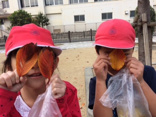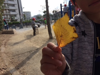 みんなで秋を見つけに、学校近くの公園に出かけました。