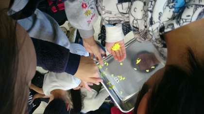 ゴムボールは、かちかちに固まり、落とすと粉々になりました!記念に持って帰っている子もいますので、ぜひお家でおたずねになってみてください。