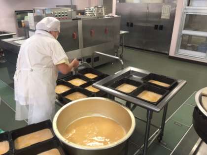 12月給食特集「手作り卵豆腐の調理風景」