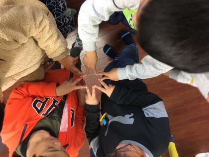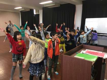 ○□△☆の形は英語で何と言うのかを教えてもらい、それらの形やアルファベットを体を使って表現しました。難しいけどとても楽しそうに活動していましたよ。