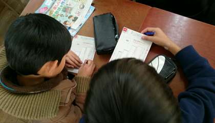 今回は、学校の先生宛に書くということで、みんなで学校の住所を書いていき、年賀状を届けたい先生の名前を書いていきました。