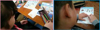 お手本を参考にしながら、干支のいのししや羽子板、鏡もちなどお正月らしい絵を頑張って描いていました。