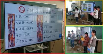 国語科「和の文化を受けつぐ」の学習で調べた和の文化について、班ごとに発表をしました。
