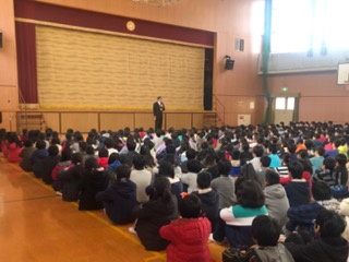 子供たちは引き締まった面持ちで、冬休みの過ごし方などの先生のお話をしっかり聴きました。