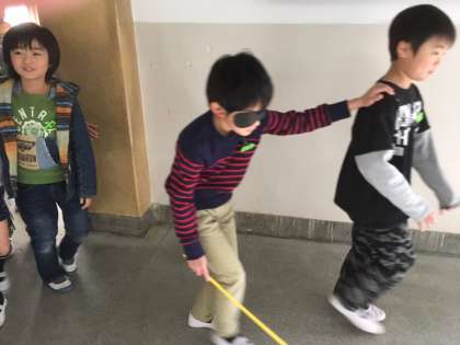 2学期に、国語科で盲導犬について学習し、より深く学ぼうということで実施しました。