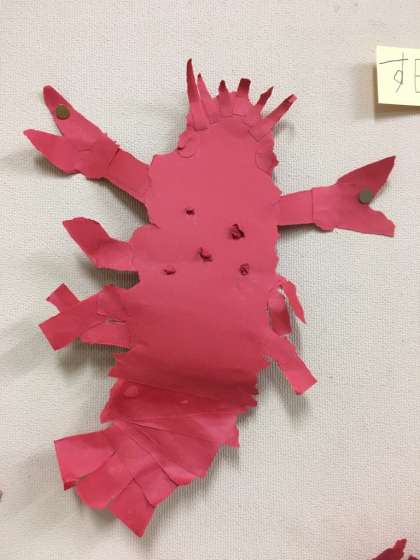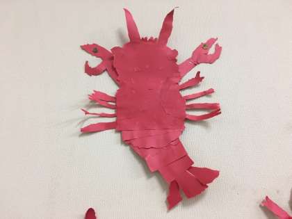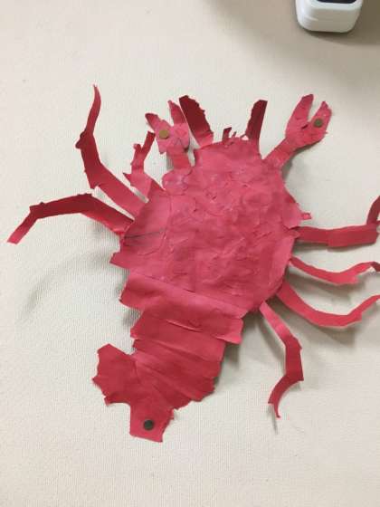 はさみを使わずに手で切っていきました。足の節や、しっぽの部分など、とてもよく観察できていたことがわかります。この後は、自分を作っていきます。
