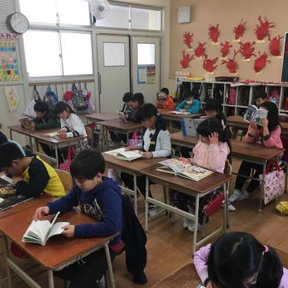 今週は読書週間です。図書の時間とお昼の読書タイムの様子です。