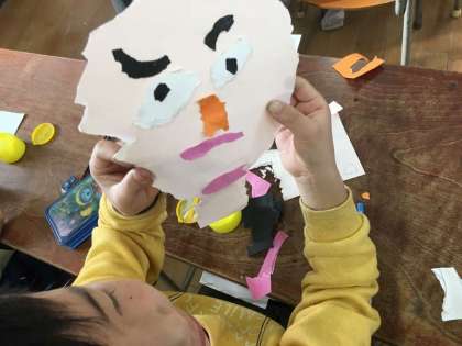 ザリガニを触った時の気持ちを考えて表情を出しました。