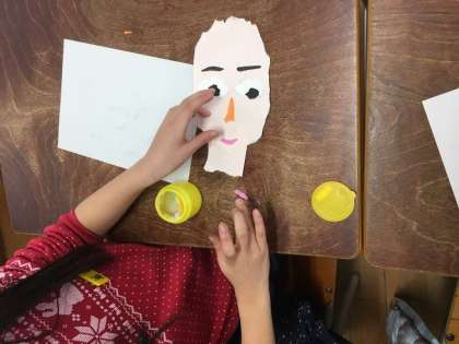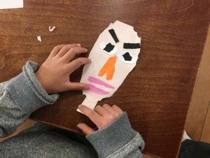 紙版画の途中経過です。先日ザリガニを完成させ、次は顔を作っていっています。