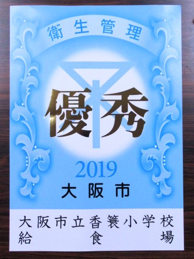 本校の給食調理室が、大阪市より2019年環境衛生並びに食品衛生関連施設の優秀標を贈呈されました。