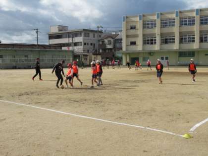 プロサッカーリーグ1部の「セレッソ大阪」からコーチに来ていただき、6年生にサッカーの基礎基本からゲーム形式の試合まで教えてもらいました。