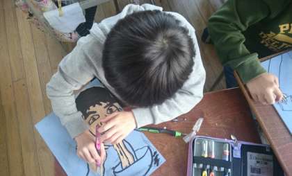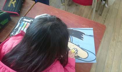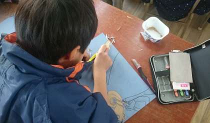 約1年ぶりの彫刻刀を前に、子どもたちは「久しぶりやわー」「どの刀で彫ろうかな…」などの声が聞こえてきました。