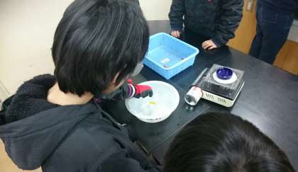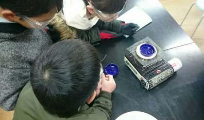 そして実験です。田中先生から注意点をしっかりきき、班で協力して取り組みました。