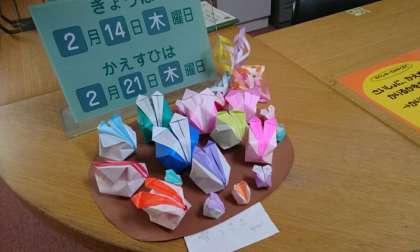 受付には、図書館ボランティアさん作の雪うさぎもあります。素敵な掲示物も、図書館に来た時に、ぜひ見てみてくださいね。