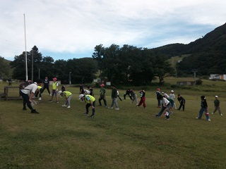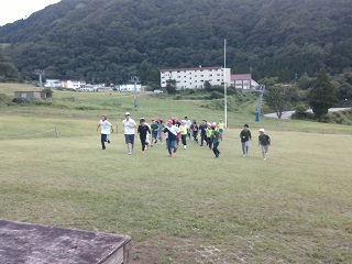 少し早く目覚めた児童もいたようですが、起床時間に全員がきっちり起床し、朝の集いに集まってきました。
